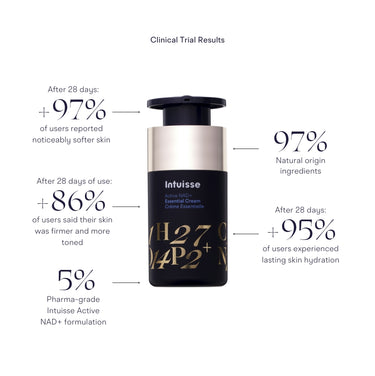 Essential Cream: A deeply hydrating, restorative cream with Active NAD+, olive-derived squalane, natural peptides, and antioxidants. Together, they replenish moisture, support collagen and elastin, calm inflammation, and protect against pollution, improving firmness, elasticity, and radiance over time.