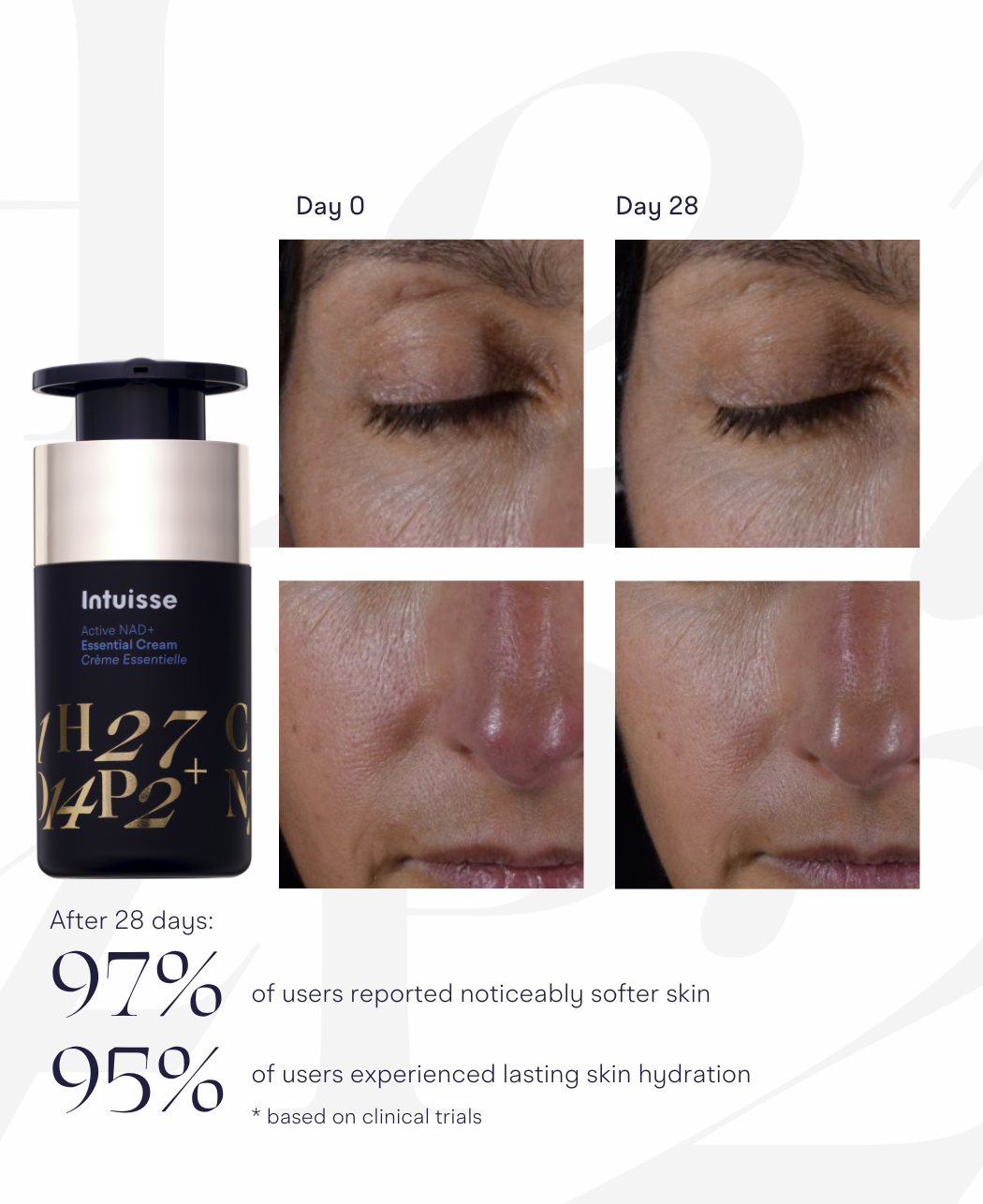 Healthy skin is radiant skin. At Intuisse, we are redefining skincare by harnessing cutting-edge science to bring you truly transformative results. Developed by a team of Swiss molecular scientists and organic chemists, Intuisse is founded on groundbreaking research into NAD+ and its role in skin health.